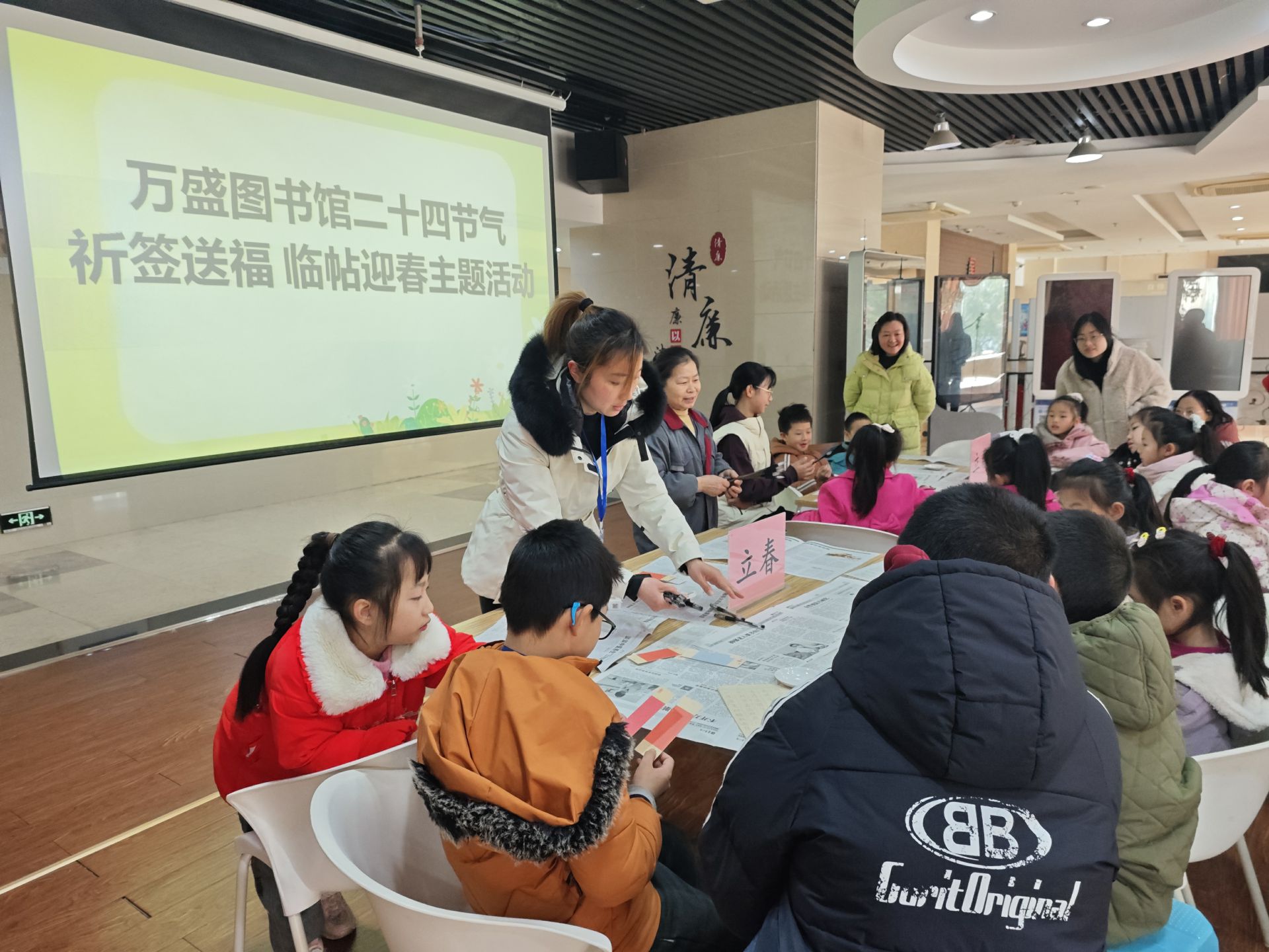 晓迎秋露一枝新,不占园中最上春。立春,是二十四节气中的第一个节气,乃万物起始、一切更生之意也,寓意吉祥。立春标志着万物闭藏的冬季过去,进入了风和日暖、万物生长的春季。2月4日,万盛图书馆开展了二十四节气之“祈签送福 临帖迎春”主题活动,吸引了20余组家庭参与。